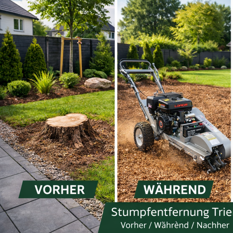 Professionelle Entfernung von Baumstümpfen und Wurzeln mittels leistungsstarker Frästechnik – präzise, effizient und bodenschonend.
